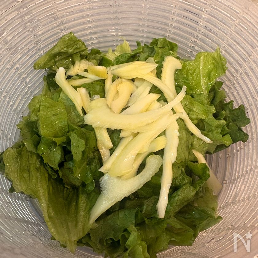 (2) レタスは適当な大きさにちぎる。