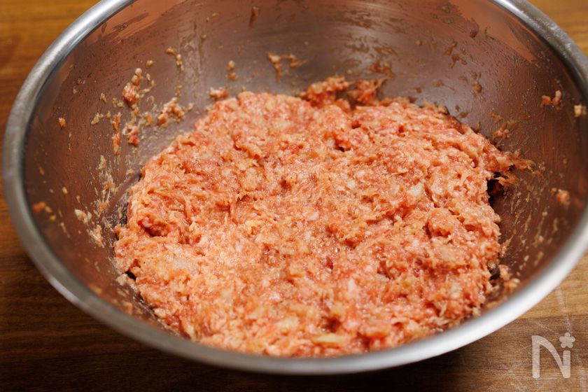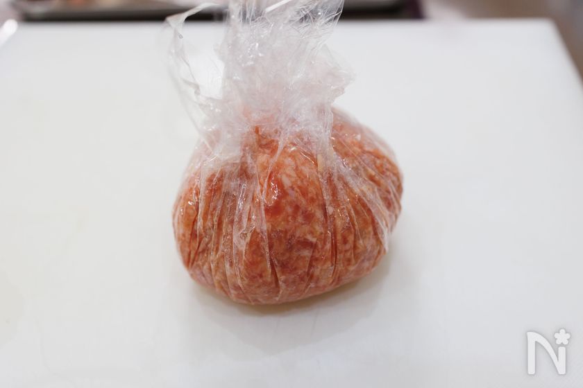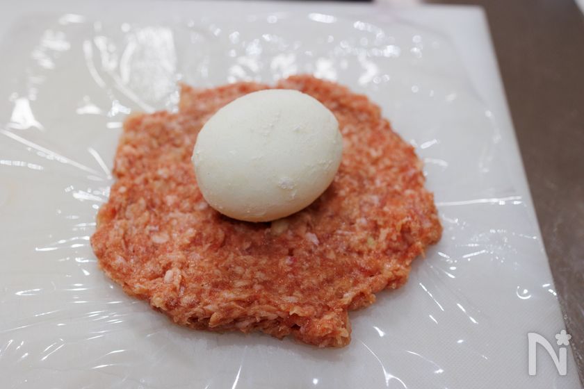 ◯肉だねで卵を包むときは、ラップを使うと手が汚れず包めてオススメです。