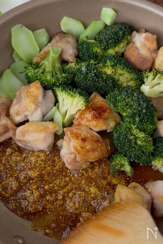 やみつき!【鶏もも肉とブロッコリーのハニーマスタード炒め】
