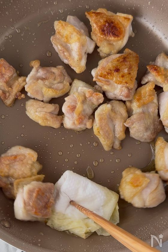 🔶鶏もも肉の脂を取り除く事で味が締まります。