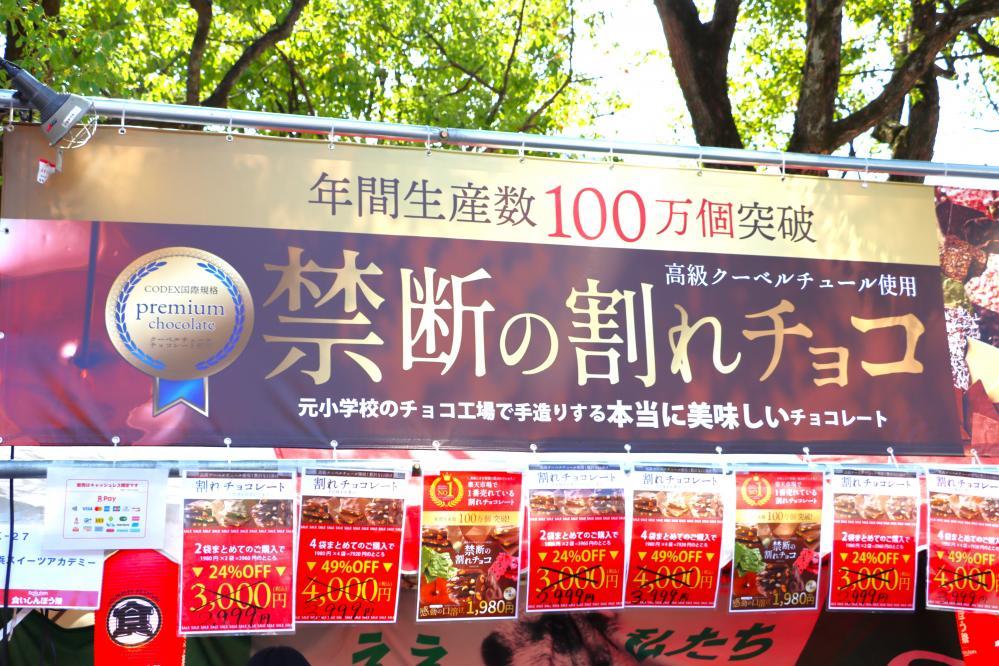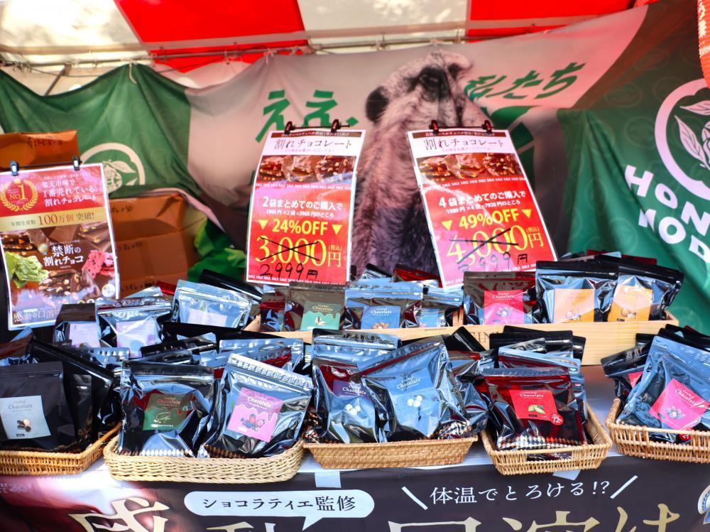 また、「割れチョコ」でおなじみの大浜スイーツアカデミーのブースでは、チョコレートの試食とセールを実施していました。