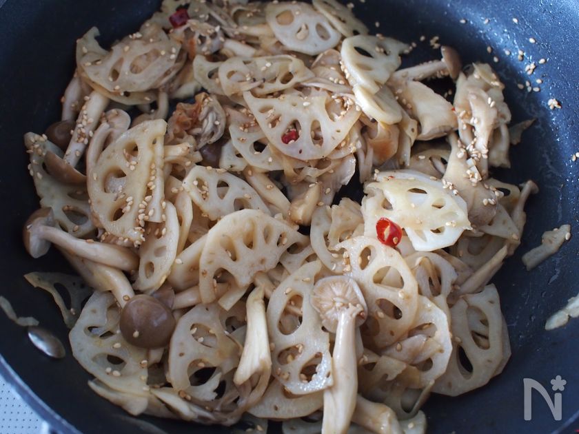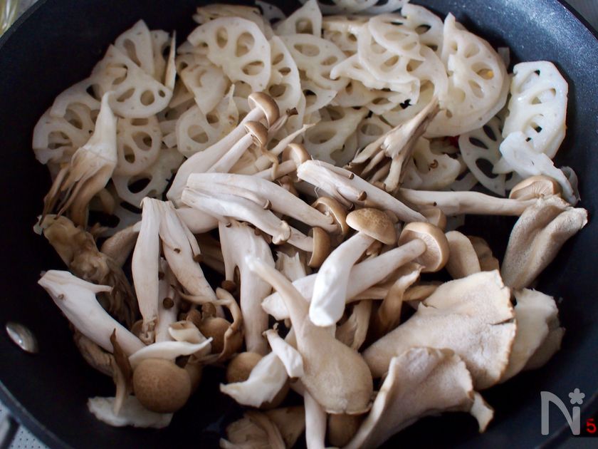 【たっぷりきのこと蓮根のきんぴら】シャキッとヘルシー常備菜♪