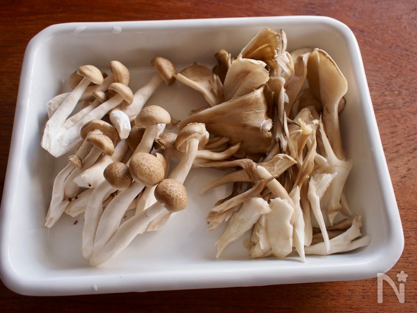 *きのこは種類を変えてもOK。今回はまいたけ、しめじを使用していますが、しいたけやエリンギでも美味しい。