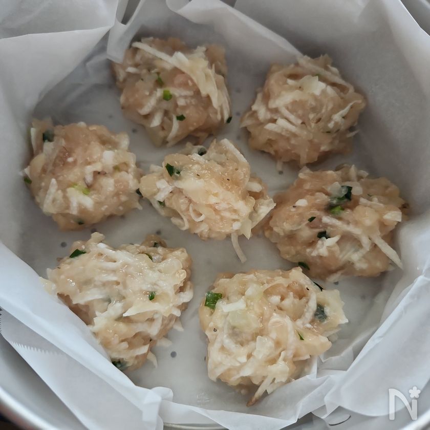 【塩こうじのながいも鶏つくね蒸し】ふわふわヘルシー♪