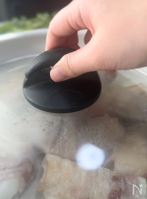 (5) 蓋をして、玉ねぎに火が通るまで4~5分焼く(弱火)