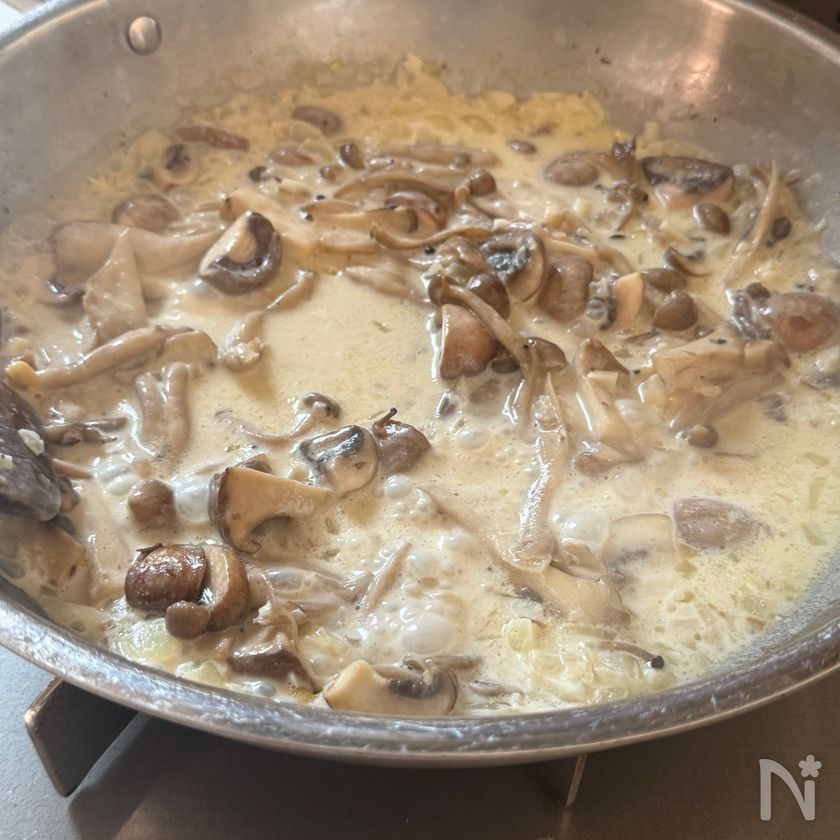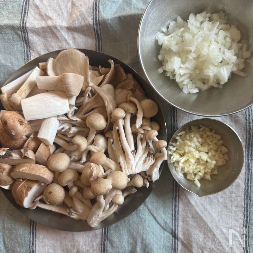 ・きのこはマッシュルーム、椎茸、しめじ、エリンギ、舞茸などから数種類使うと食感、風味ともによくなります。