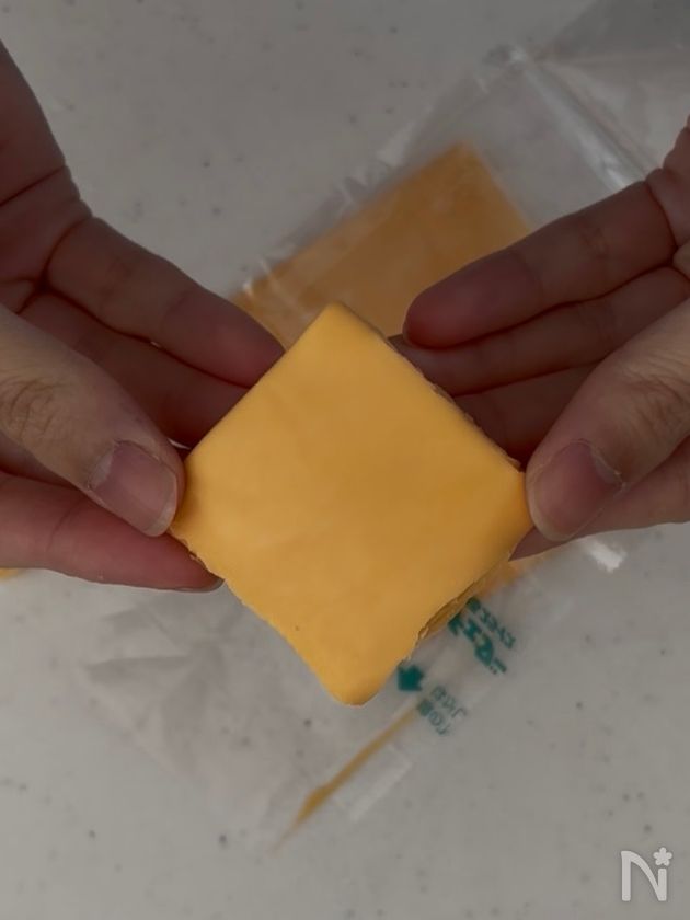 スライスチーズを半分に折り、さらにもう一度折って1/4サイズにする。