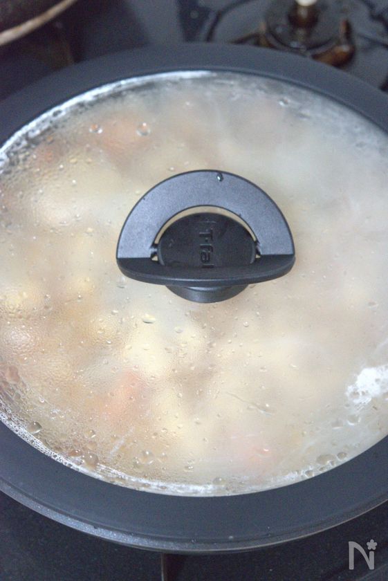 落し蓋と蓋をして沸騰したら中火弱で10分煮る。
