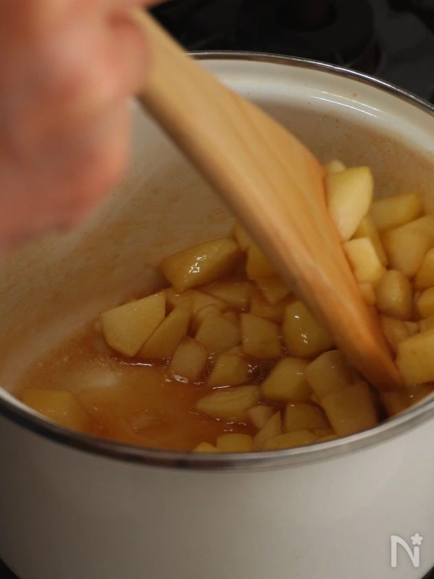 ・りんごは皮と芯を取り除き、1cm角に切る。