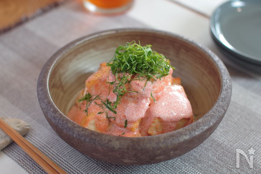 5分で簡単!お箸が止まらない♡明太マヨ焼き豆腐