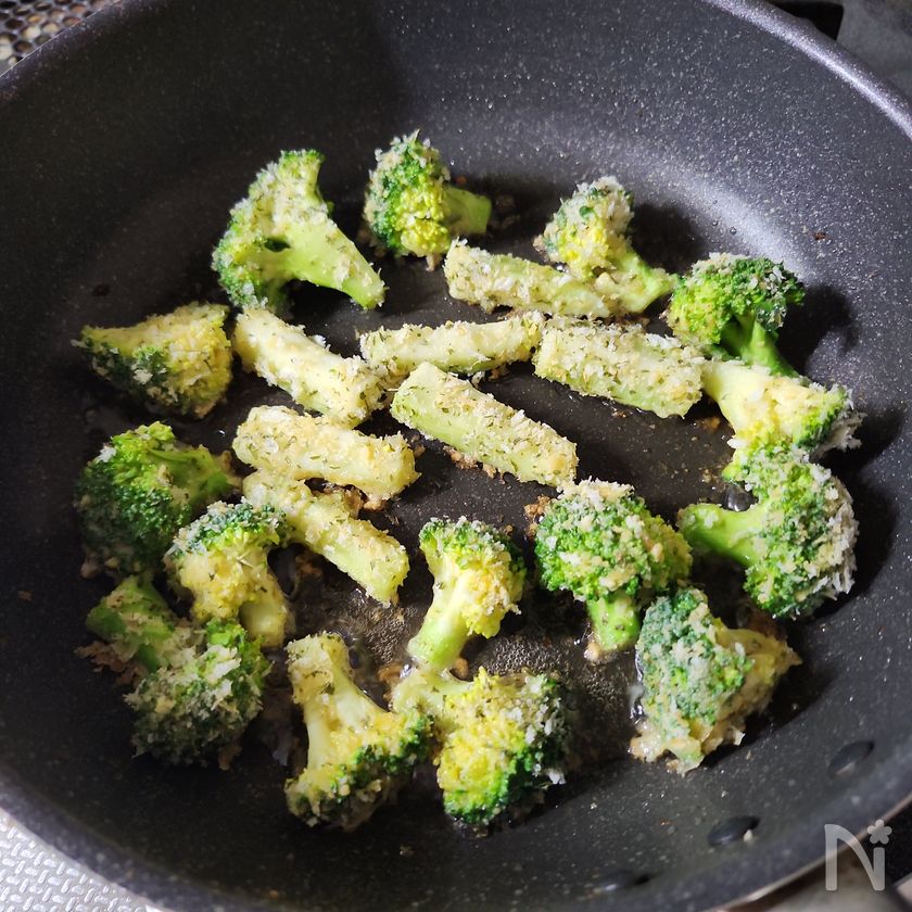 ブロッコリーをぎゅっと押し付けるようにするとパン粉がくっつきやすい。