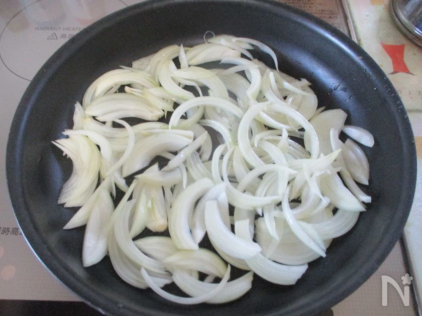 (下準備) 玉ねぎは薄切り、