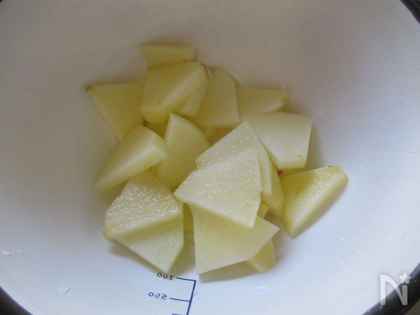 りんごは皮をむいてイチョウ切り
