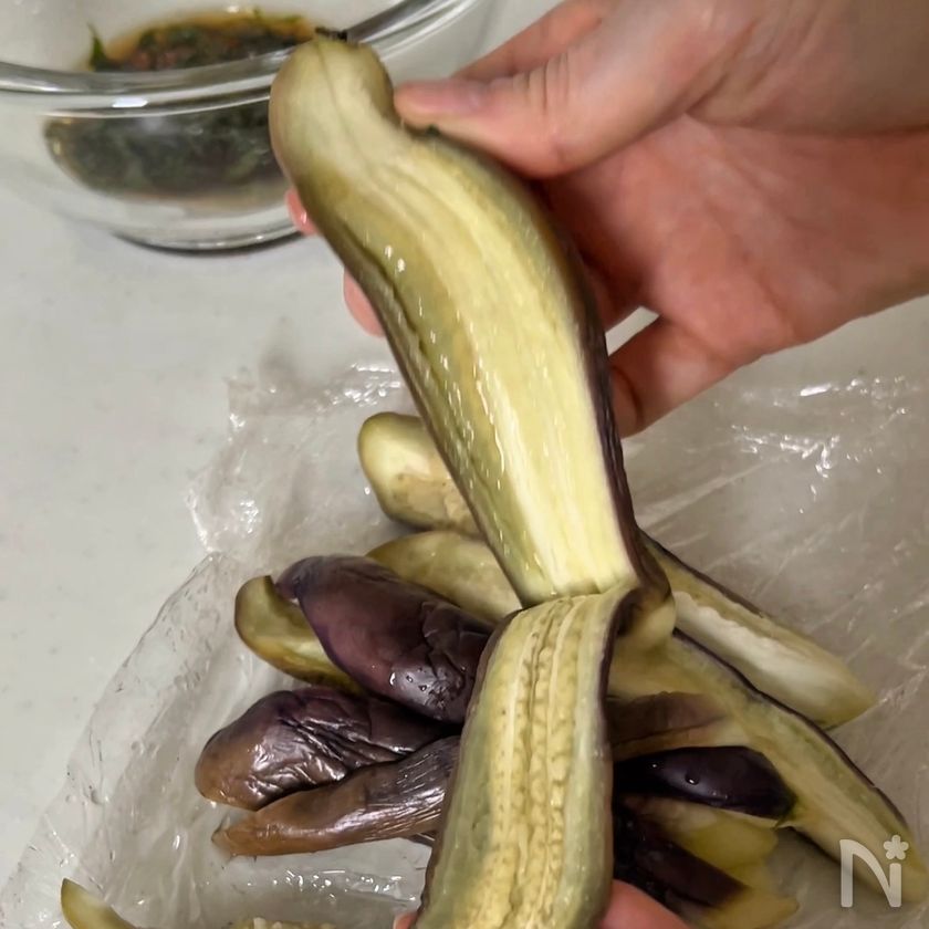 ●なすを冷やす際、氷水でもOKですが、保冷剤の上に置くと洗い物も出ないのでおすすめです!