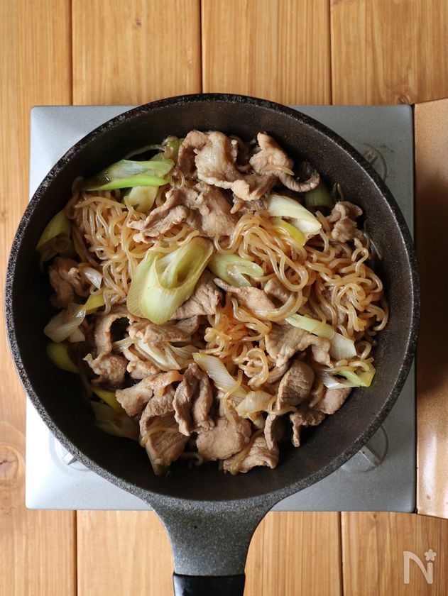 ワンパン10分!【豚こま肉と白滝のすき煮】時短で味染み♩