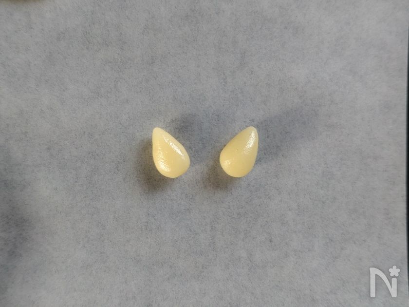 (5) 余りの生地を小さなしずく型に丸める。(耳)顔の個数✕2。
