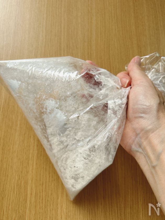 (1) 厚手のポリ袋に【A】を入れ、袋をふくらませて振り混ぜる。