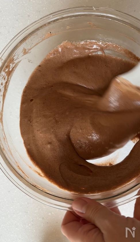 ・ふんわり仕上げるポイントは、卵をしっかり泡立てることと、米粉とココアパウダーを混ぜるときに粉の混ぜ残しがないようにボウルの底からしっかり混ぜること!