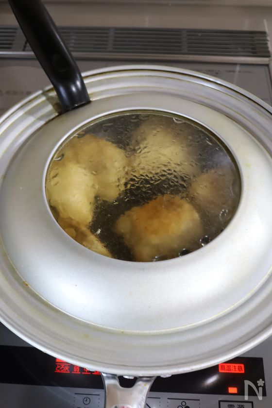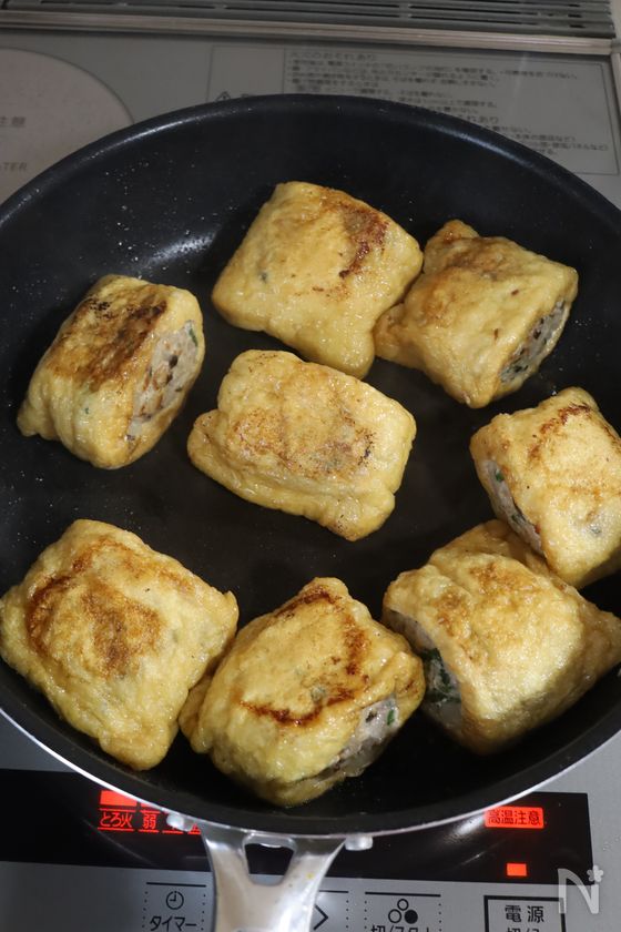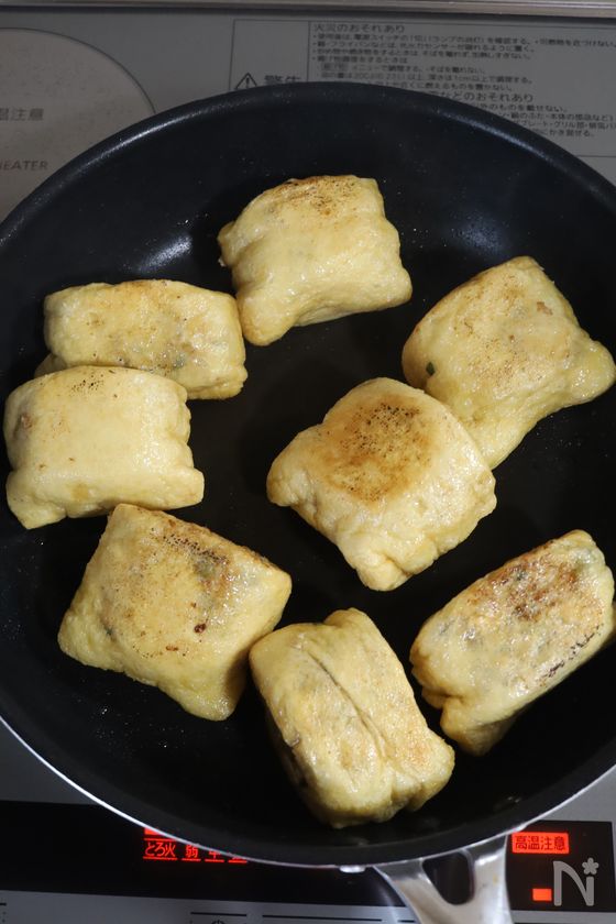 •水はお使いのフライパンの大きさに合わせて、油揚げが1mm浸るくらいの量で調整してください。
