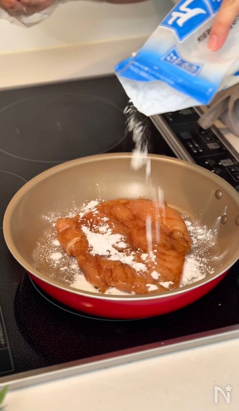 (2) ①に片栗粉を塗す。