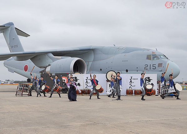 しかも航空自衛隊が、日本をアピールするためにC-2輸送機のほかに用意したのが、入間修武太鼓(入間基地太鼓部)による和太鼓の演奏でした。
