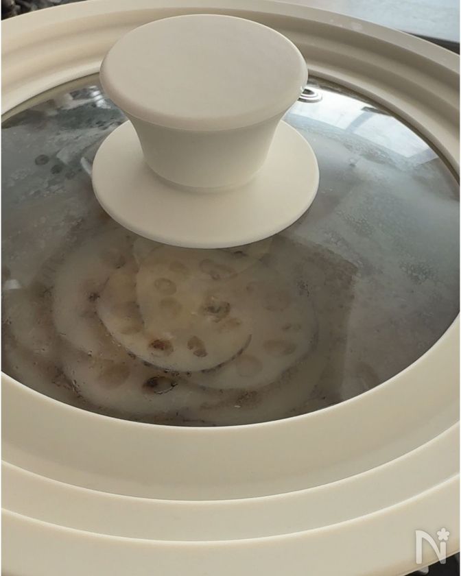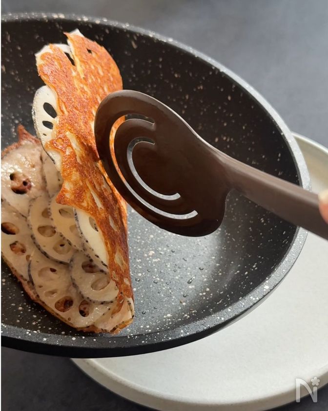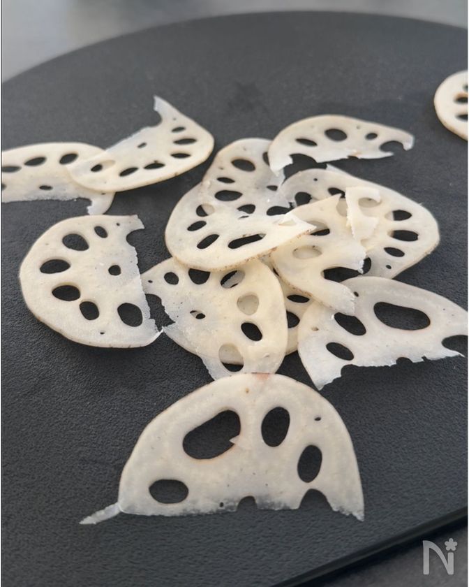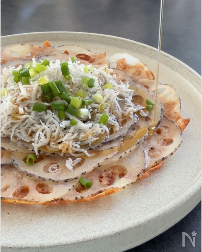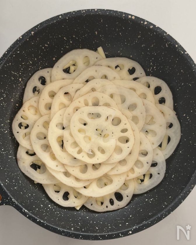 スライスしたれんこんは適当に散らしても大丈夫◎