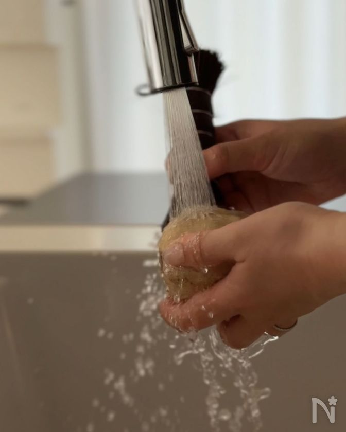 (下準備) れんこんは皮付きのまま、よく洗っておく