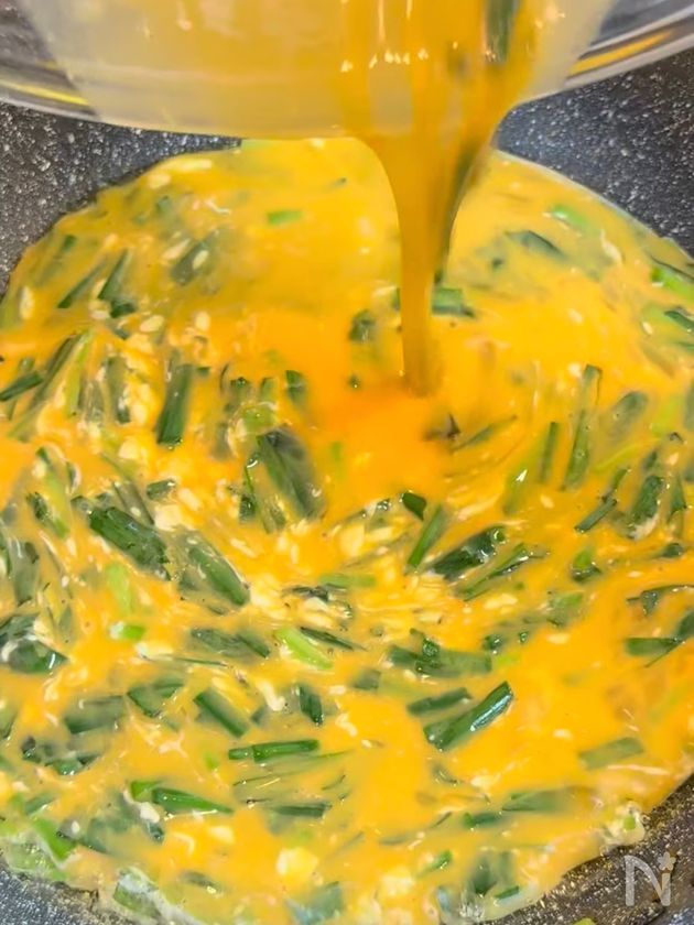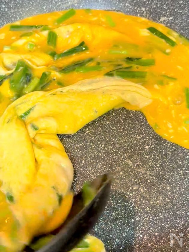 ◎ニラは先に炒めてから卵に混ぜると、火通りがそろって仕上がりが安定します。