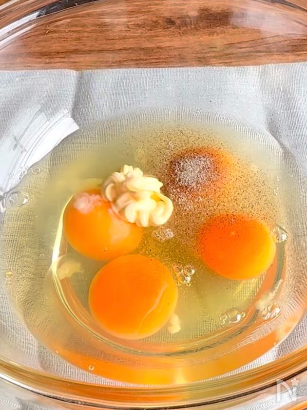 ◎卵にマヨネーズを加えると、ふわふわ&コクのある仕上がりになります。