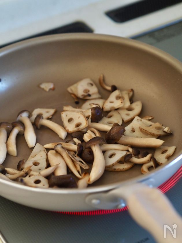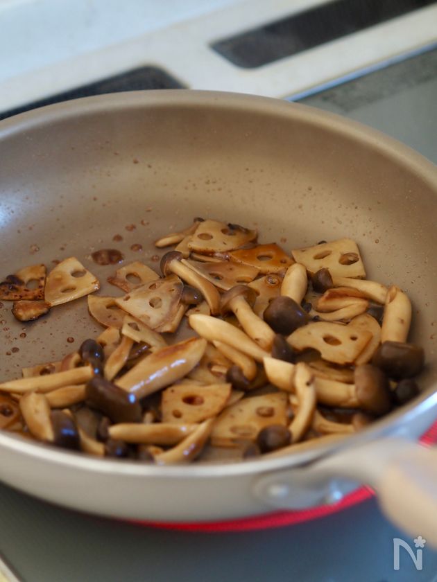 ご飯がすすむ簡単副菜【しめじと蓮根の甘酢炒め】