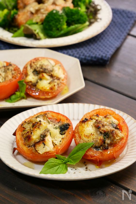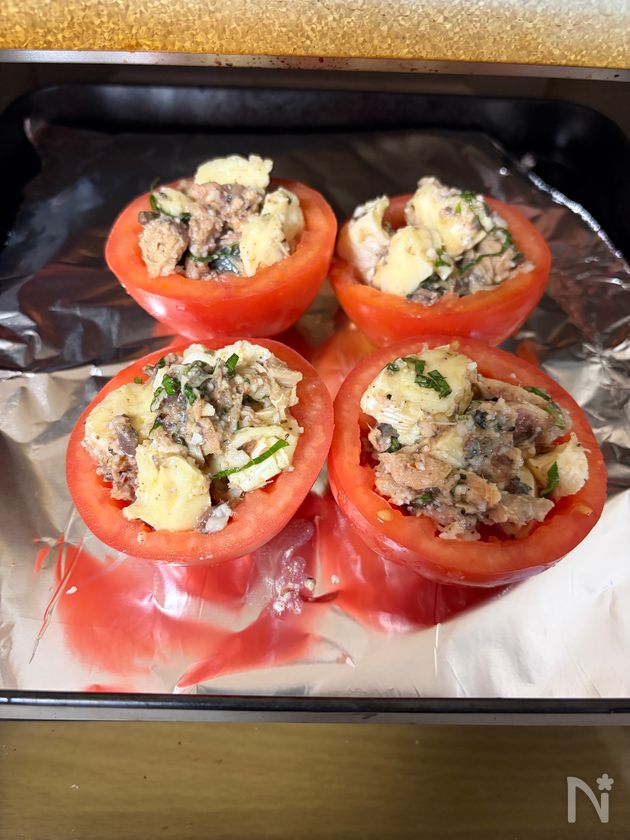 鯖缶で簡単ごちそう🍅バジル香るトマトのファルシ