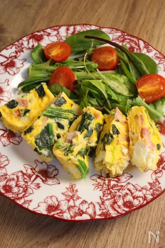 レンチン3分!ベーコンとほうれん草のチーズオムレツ