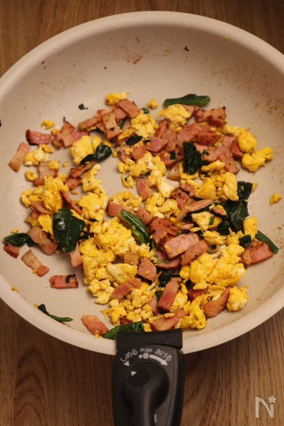 ベーコンほうれん草炒り玉子の簡単♪炒めもの