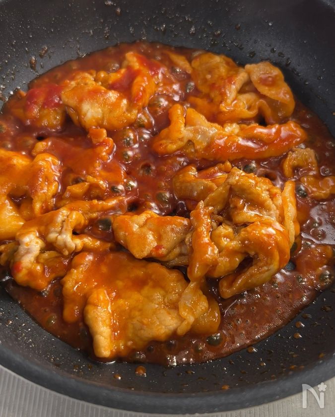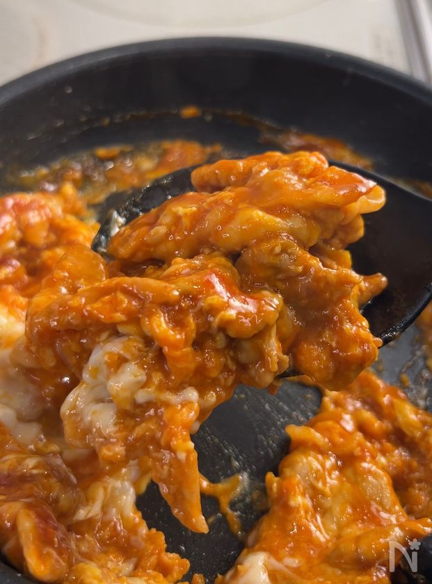 肉に粉をまぶすことで、ジューシーでタレの辛味が良くなる。