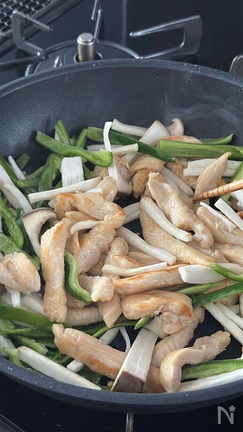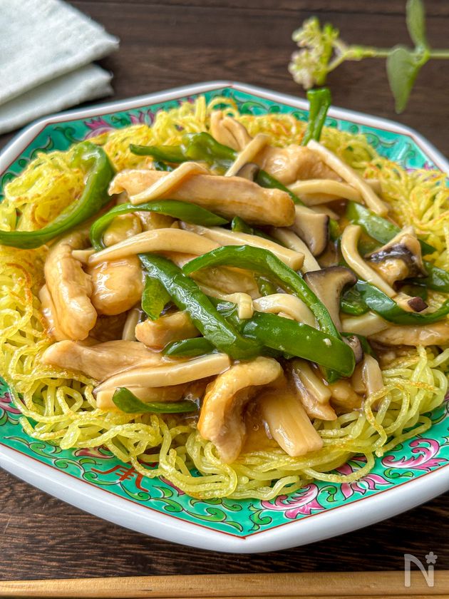 鶏むね肉で♪【青椒肉絲あんかけ焼きそば】