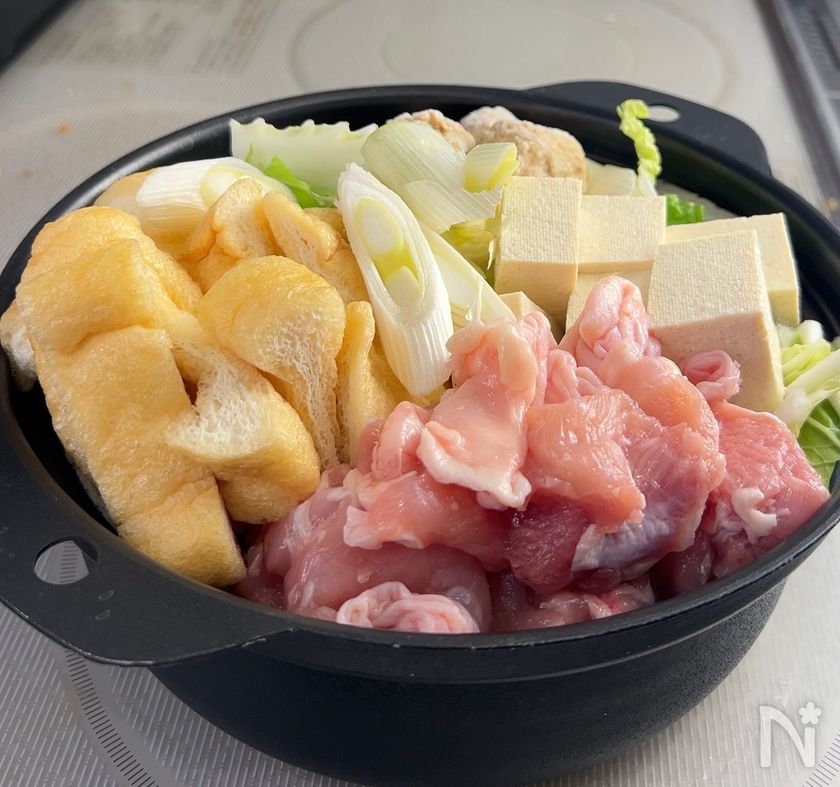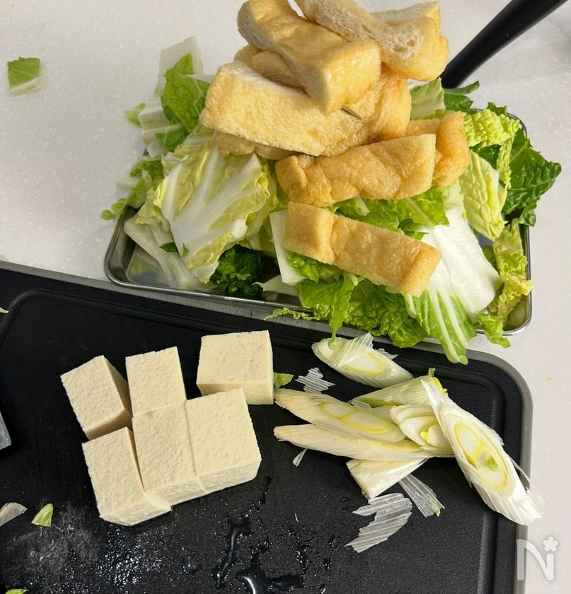 (下準備) ・鶏もも肉、木綿豆腐、小揚げは食べやすい大きさに切る。
