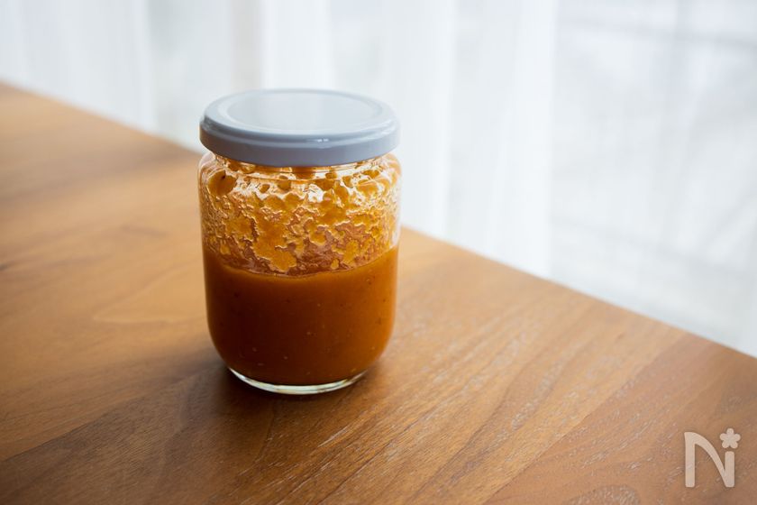 ◯すりおろしたにんじんは、水分ごと瓶に入れてください。