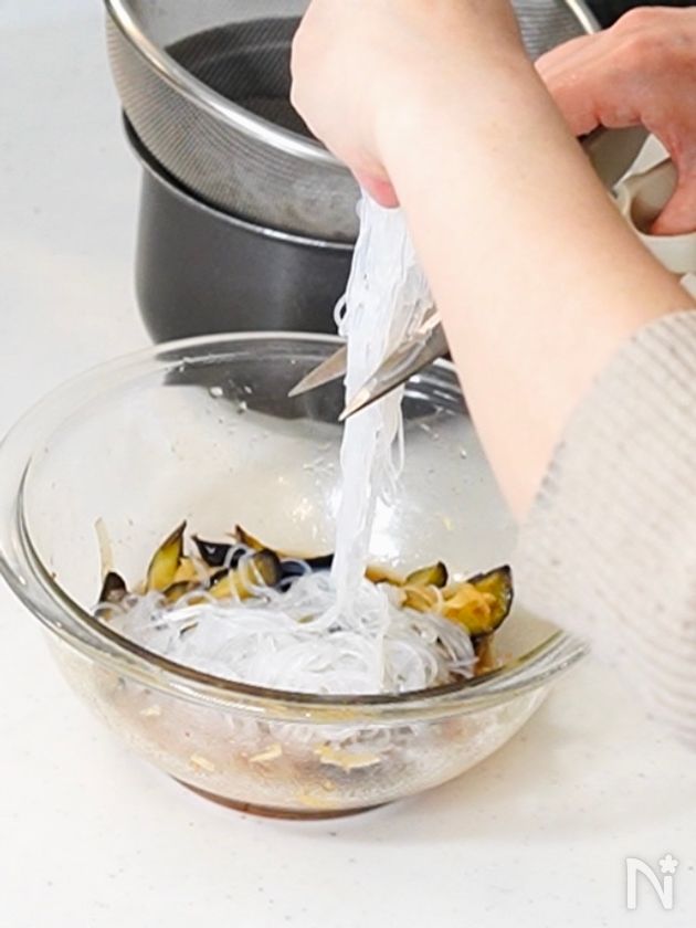 (6) 春雨が芯まで煮えたらザルにあげ、流水で洗って冷まし、