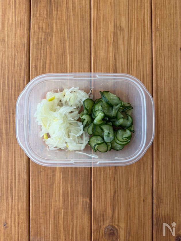 きゅうりと玉ねぎの水気はよく絞ってください。