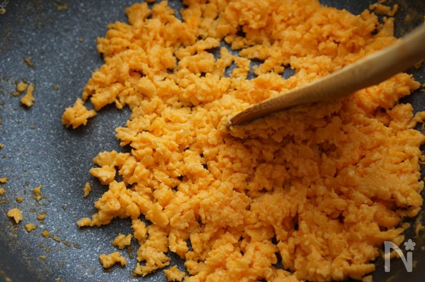 作るポイントは、冷たいフライパンから始めることと、状態をよく観察してかき混ぜること。