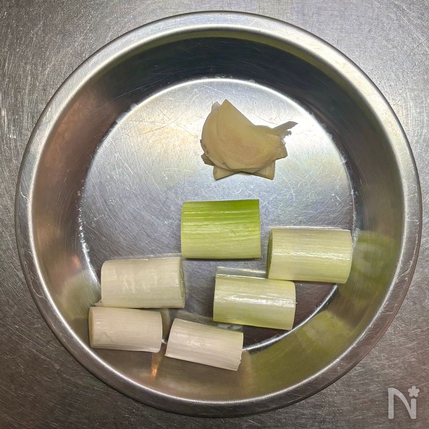 しょうがは皮をむいて薄切りにする。