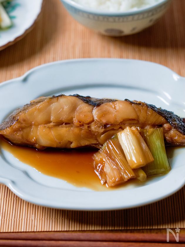 (6) 身が崩れないようにターナーなどでかれいを器に盛り、長ねぎとしょうがを添え、煮汁をかける。