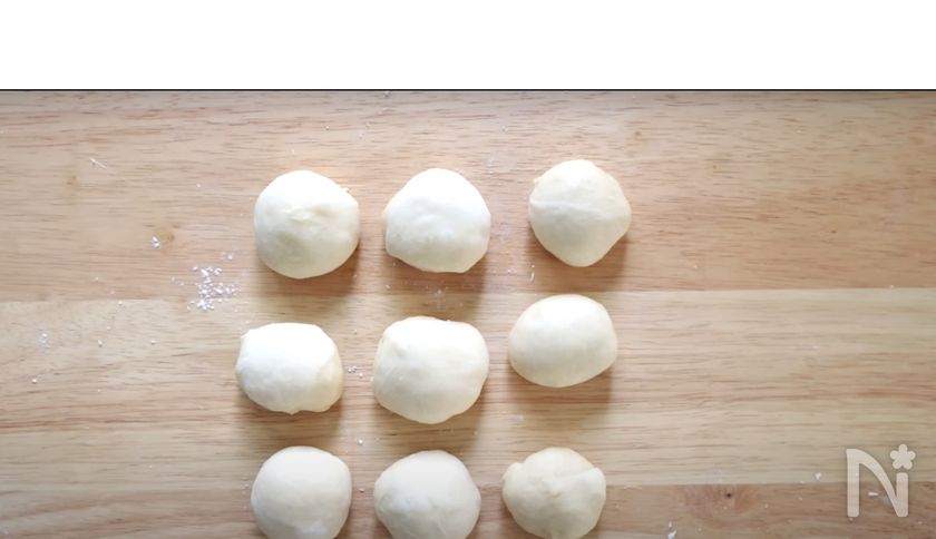 (5) 成形(丸めて9個を型に並べる)