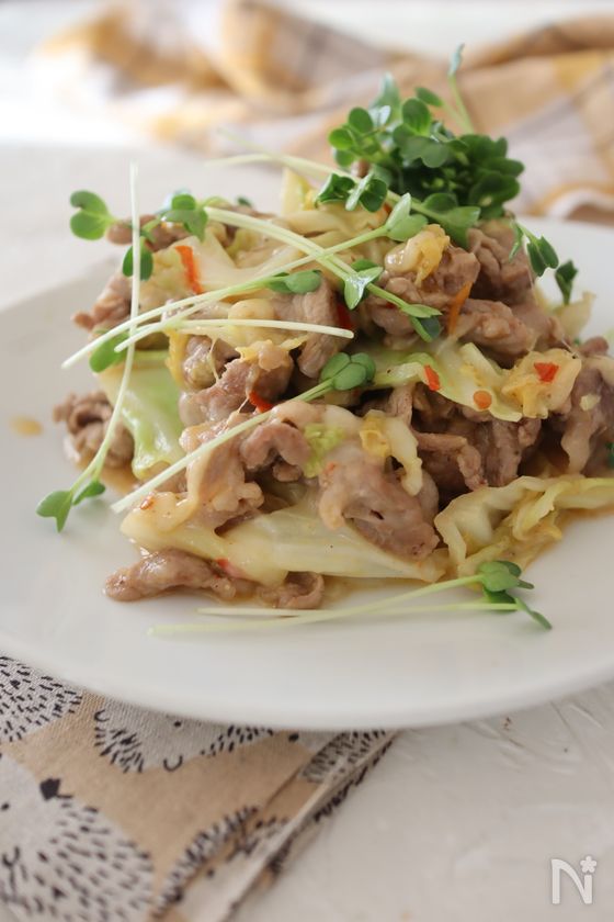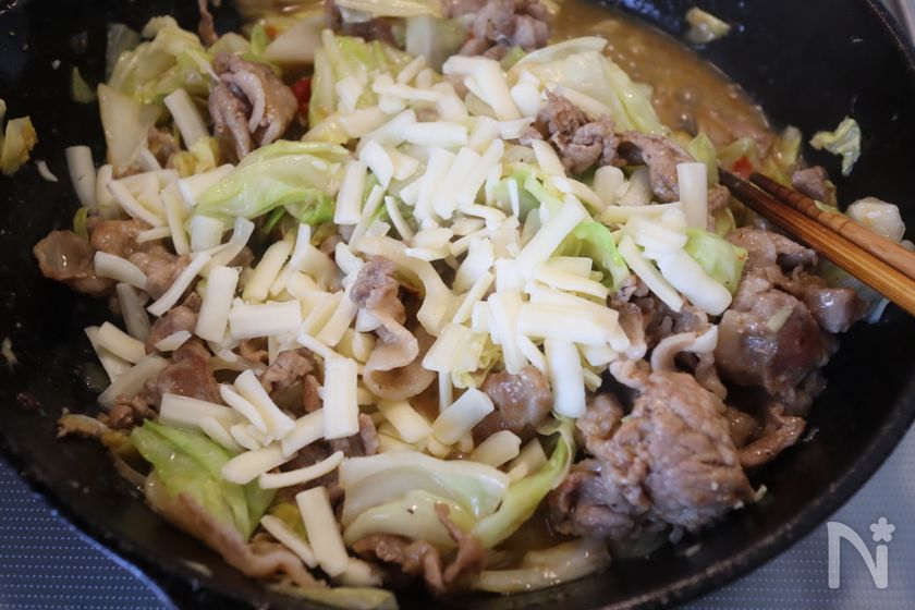 時短!豚こまとキャベツのピリ辛甘味噌チーズ炒め