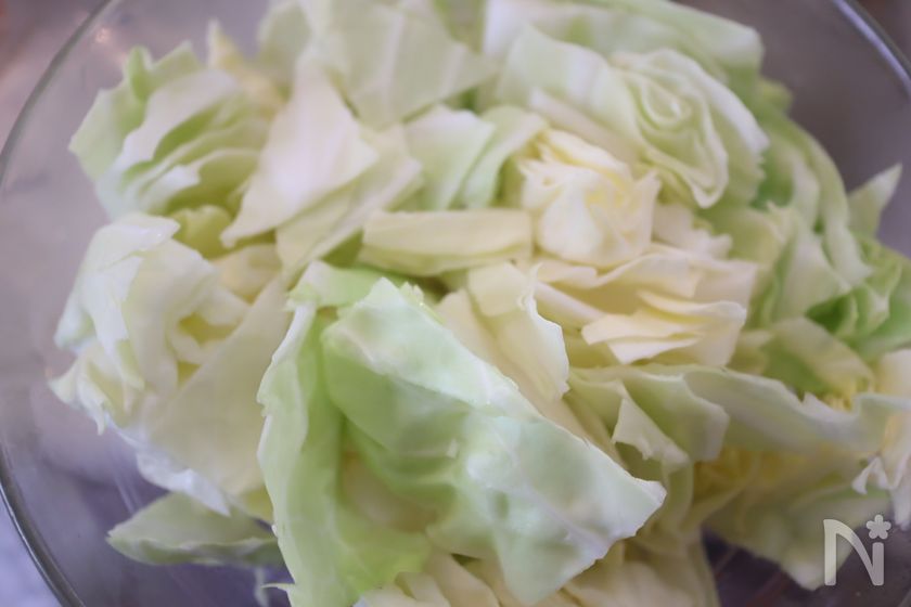 キャベツは一口程度のざく切りにする。