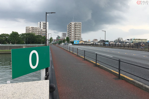 東京都江戸川区内の一般道の橋に、緑の0キロポストが置かれています。この場所から少し離れたところを通る京葉道路のものだそうですが、首都高と京葉道路との本線上の接続点にも0キロポストが。なぜふたつもあるのでしょうか。