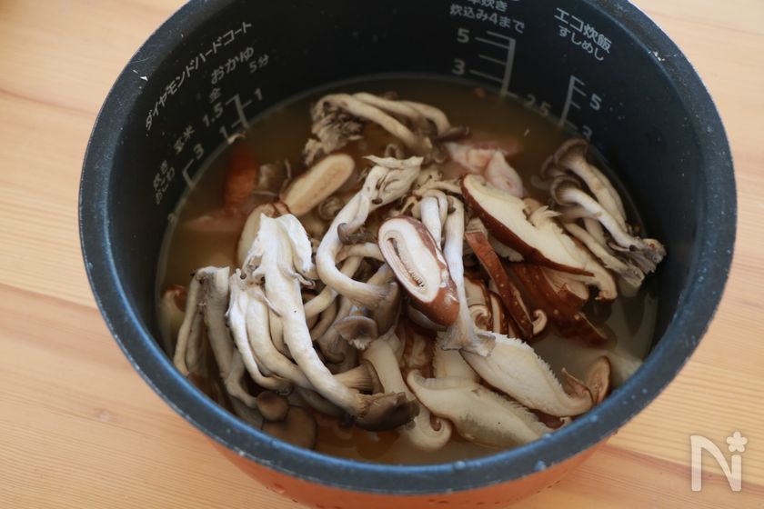○きのこ類はたくさん入れ過ぎると水分多くなり、ごはんがベチャッとするので気をつけてくださいね。