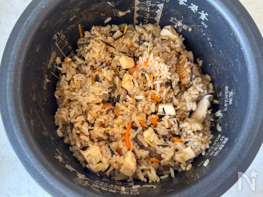 炊飯器にセットし、普通モードで炊飯し、炊き上がったらやさしく混ぜる。