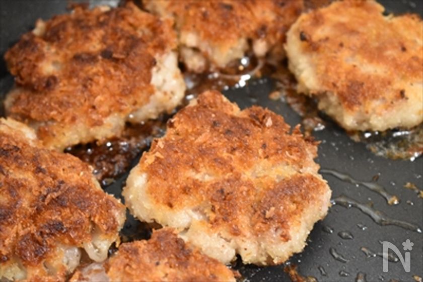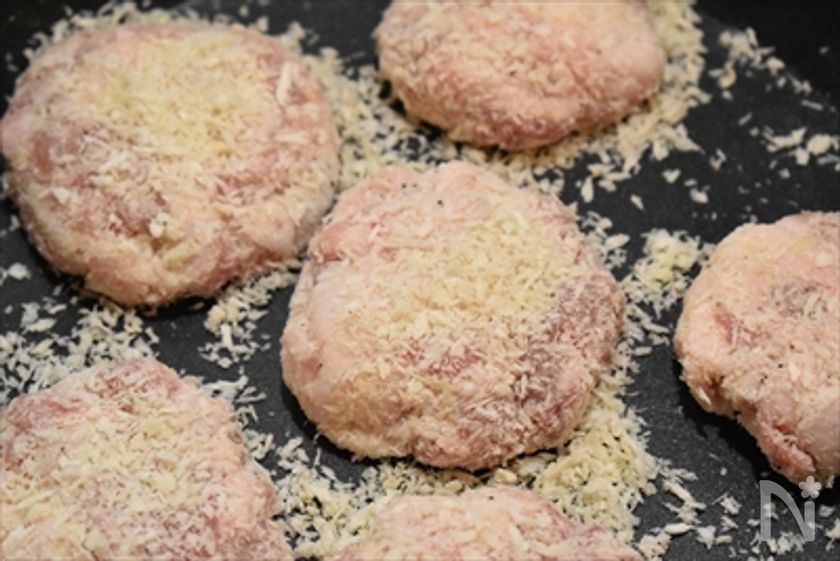 一口サイズにしたい場合はもう少し小さく成型してパン粉をつけてください。