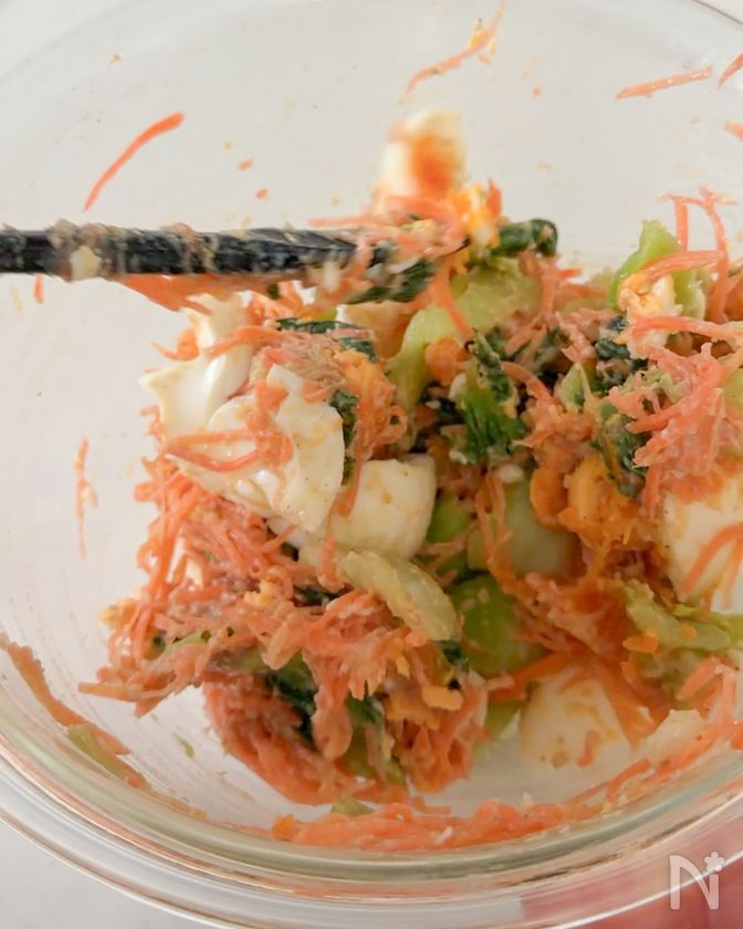 マヨ不使用!【チンゲン菜と人参の卵サラダ】
